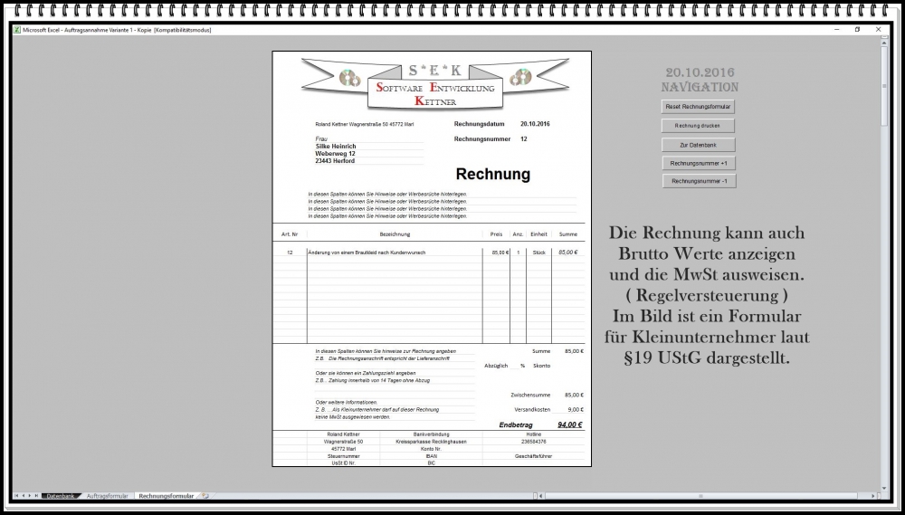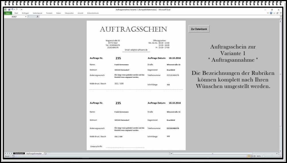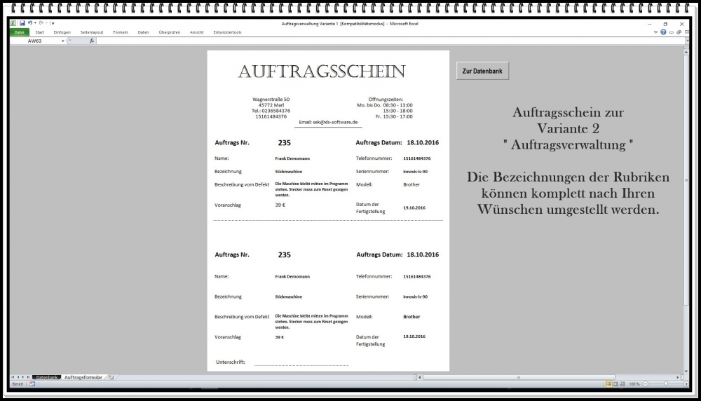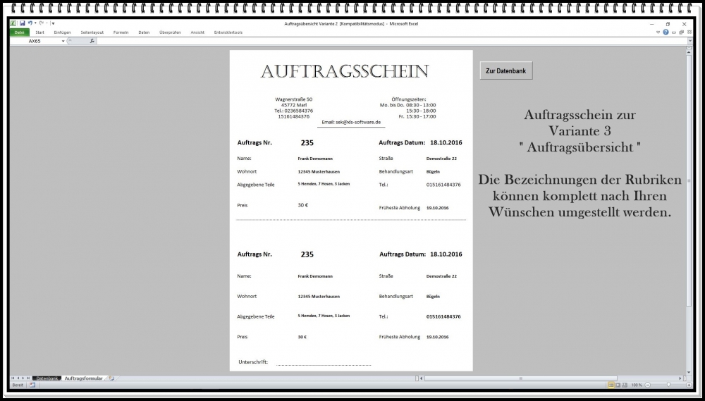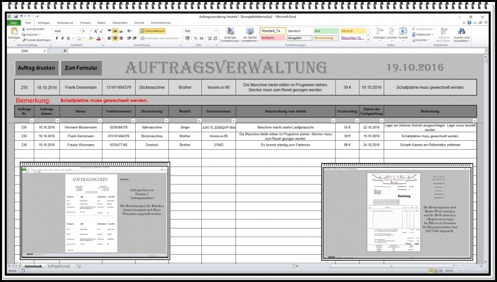 Auftragsverwaltung Excel – Software mit Abholschein, Kundenverwaltung und Rechnungserstellung