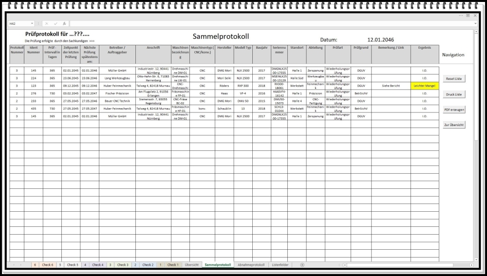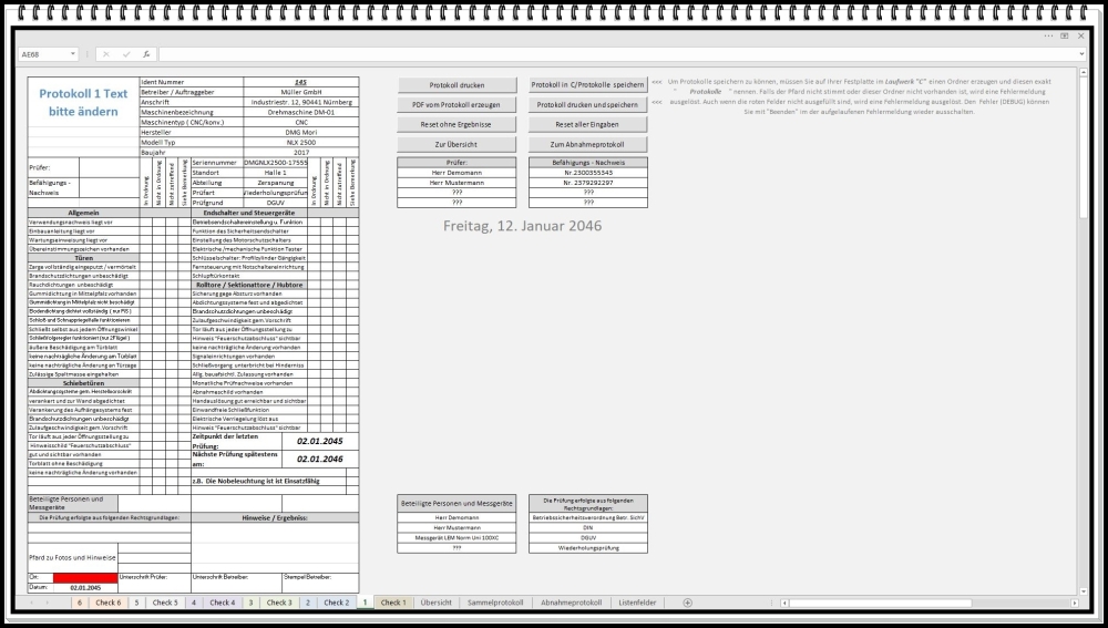 - Praxisbewährtes Excel Prüfbuch – keine Installation notwendig