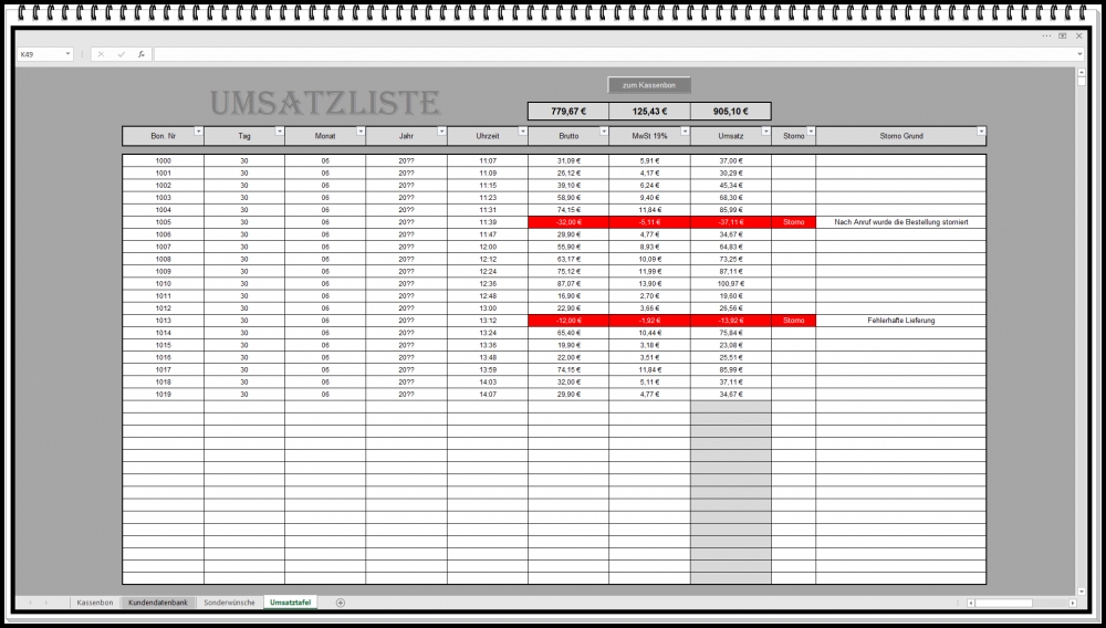 Universal Computerkasse für Bondrucker – Excel Kassensoftware