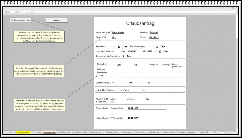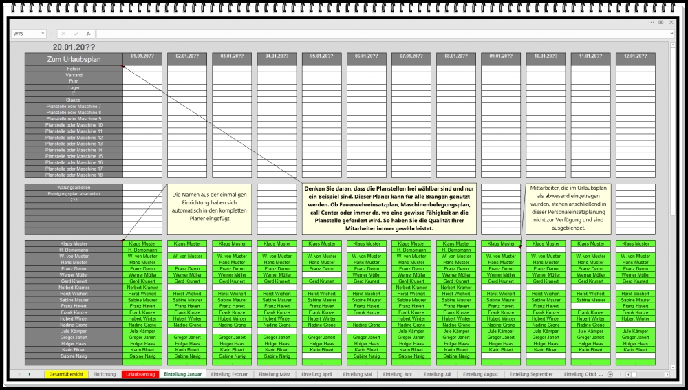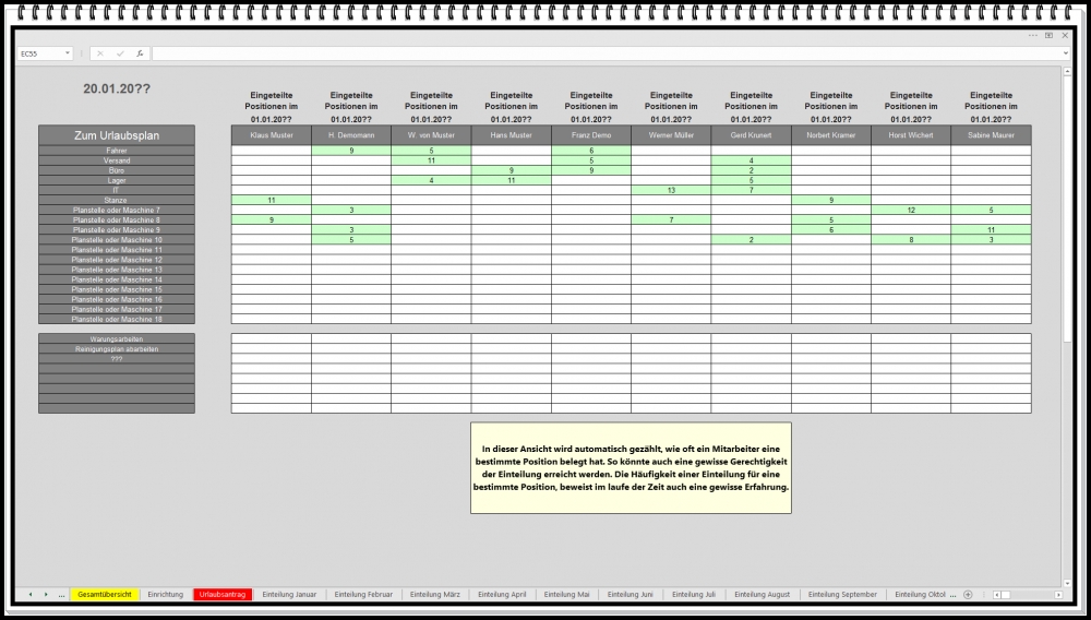 Mitarbeiter- und Maschinenplanung – Excel Software für Schichtplanung, Personalverwaltung und Einsat