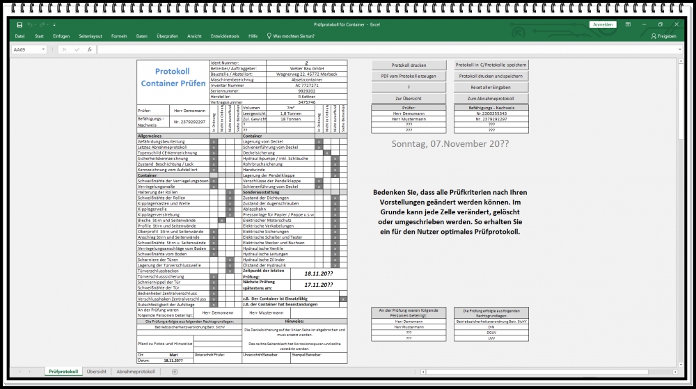 DGUV Prüfbuch für Containersysteme –Prüfsoftware