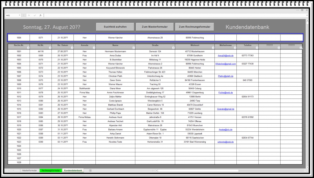 Automatische Übernahme von Kundendaten ins Rechnungsformular