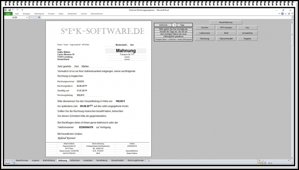 Rechnung, Angebot, Lieferschein und Mahnung erstellen