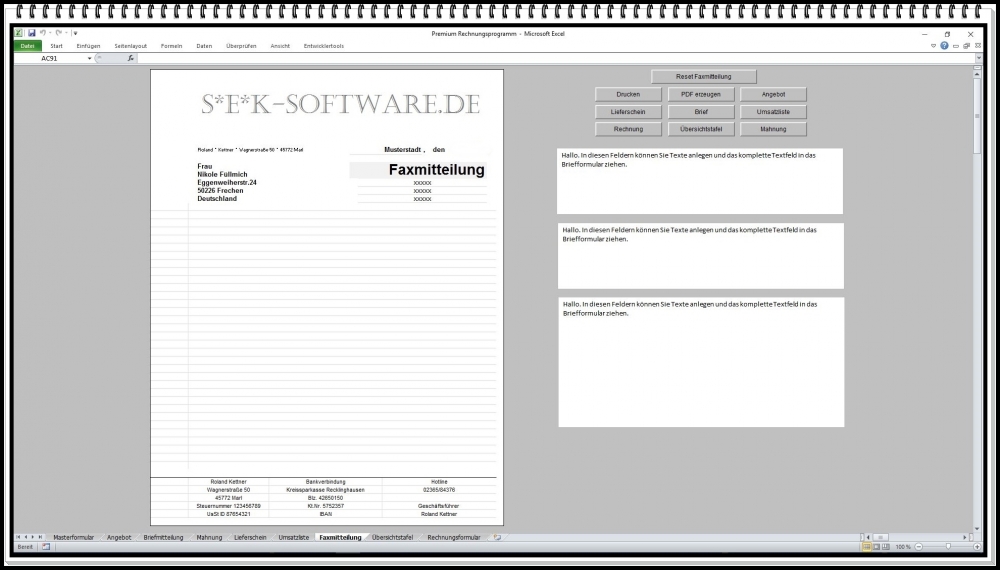 Bitte senden Sie uns dafür einen gesonderten Hinweis mit der Mailadresse oder der Lieferadresse. Auf Ihrem Windows Rechner muss MS Excel zur Verfügung stehen.