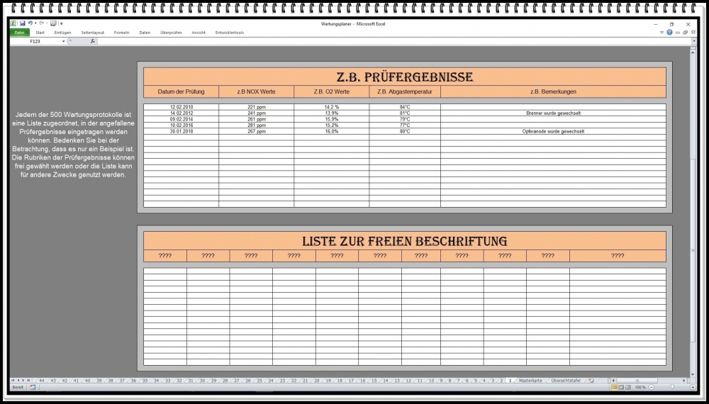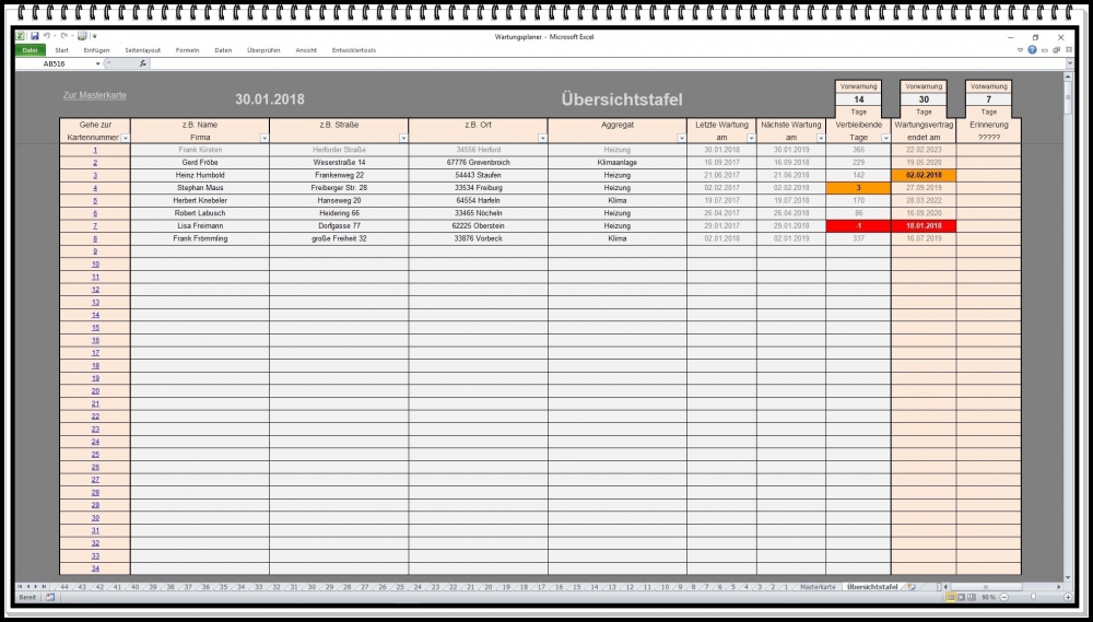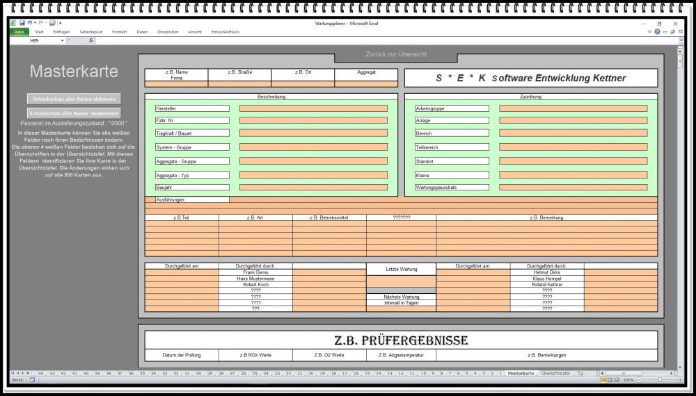 Wartungsplaner Excel – Software zur Wartungsplanung, Wartungstermine Verwaltung und Instandhaltung (1 Stück)